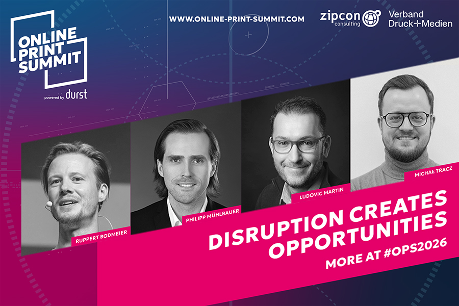 Der Online Print Summit (OPS) 2026 baut sein Speakers Line-up weiter aus und rückt das Thema „Disruption“ ins Zentrum der Diskussion. Von 12. bis 13. März findet das Event in München statt. Laut den Veranstaltern muss Onlineprint neu gedacht werden.