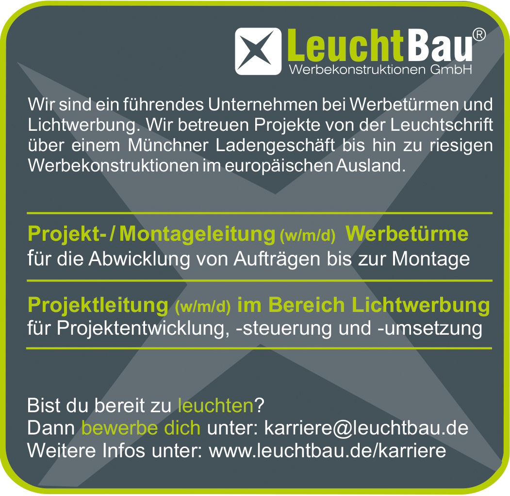• Akquise neuer Kunden und Projekte im Bereich Lichtwerbung
